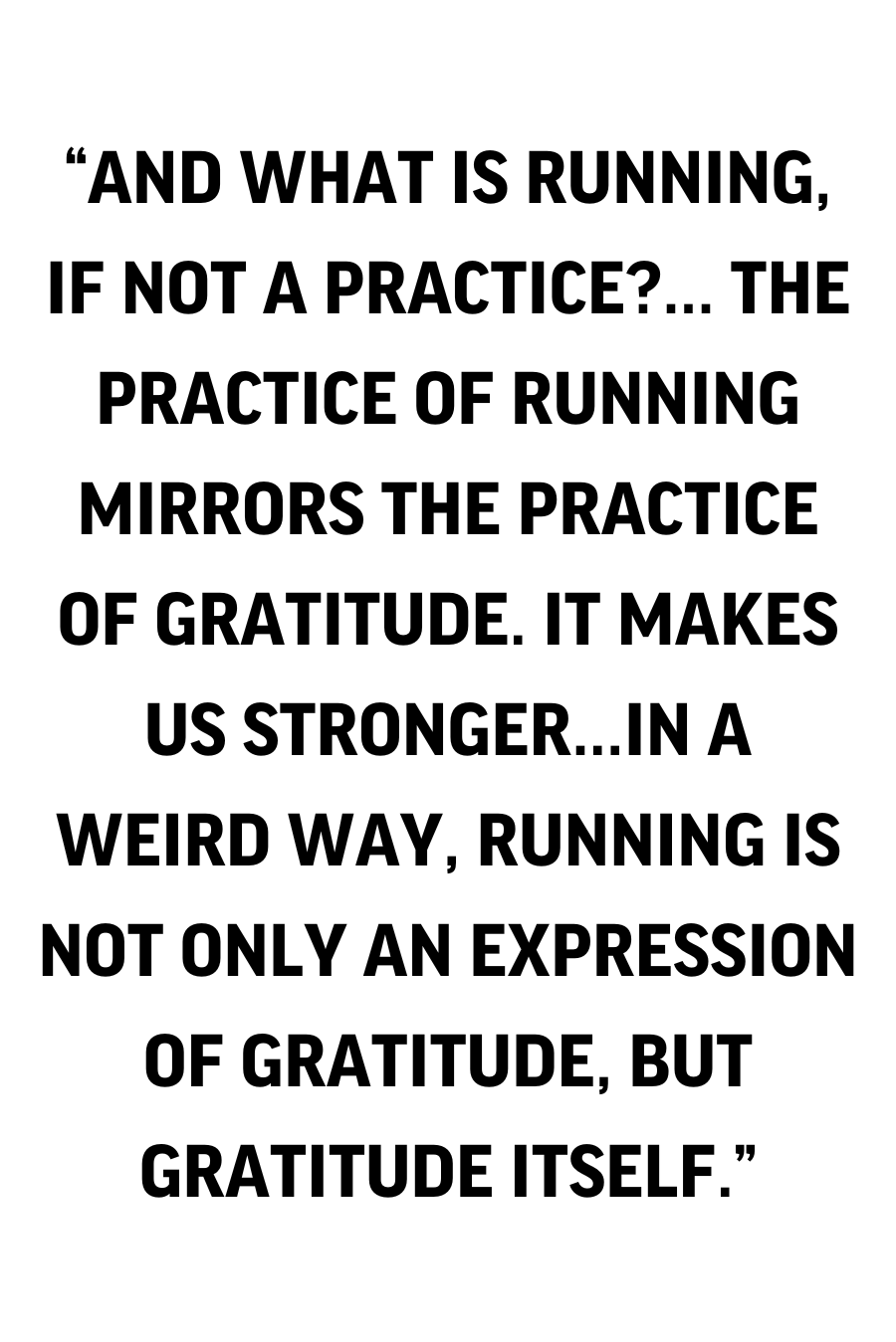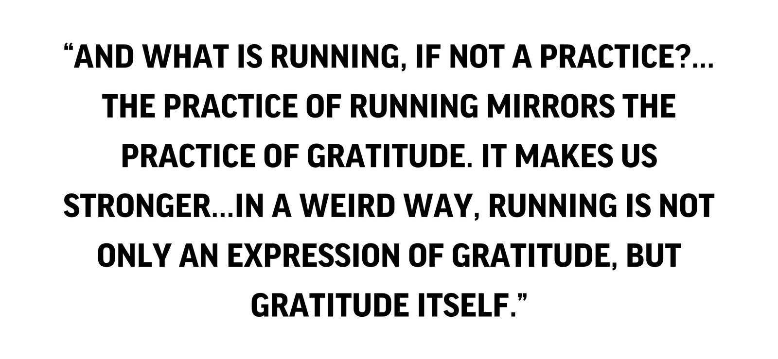 Doesn’t that sound like a description of running itself? And what is running, if not a practice? Solitary, in pairs or in groups; on trails, the road or on the track, the practice of running mirrors the practice of gratitude. It makes us stronger. It makes us better friends, family members, and members of our communities. In a weird way, running is not only an expression of gratitude, but gratitude itself.