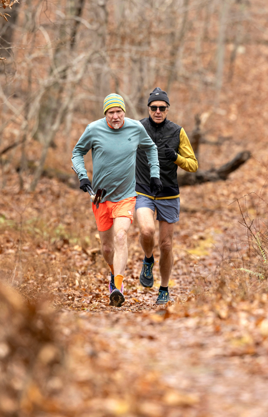 Which brings us back to Thanksgiving, which, as we’ve learned, dawned with some serious pain in the kisser. It also dawned with torrential rains and temps in the mid-thirties, and like most runners when waking to such challenging conditions, my first thought (after Damn, my face hurts) was, Sweet! Time to break out the gear! So, I coaxed my beloved (who is a hiker, and slightly less jazzed by inclement weather than I) from a warm bed full of cats, with a cup of coffee and a reminder of her awesome new red Gore-Tex jacket, and into the deluge we went.