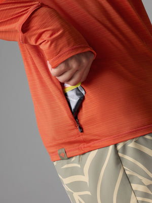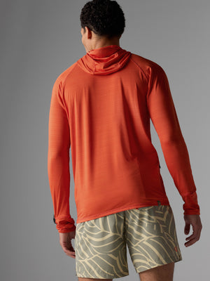 Sun safety feels better than ever. Now with a UPF 50 rating, the 2.0 updates to lightweight jersey with laser-cut perfs under the arms for impressive ventilation. While the scuba-style hood hides the neck and ears from rays, a new built-in brim shades the face and slanted cuffs cover the hands for greater protection. One last surprise: a small zippered pocket in back.