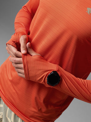 - Extended cuffs with thumbholes