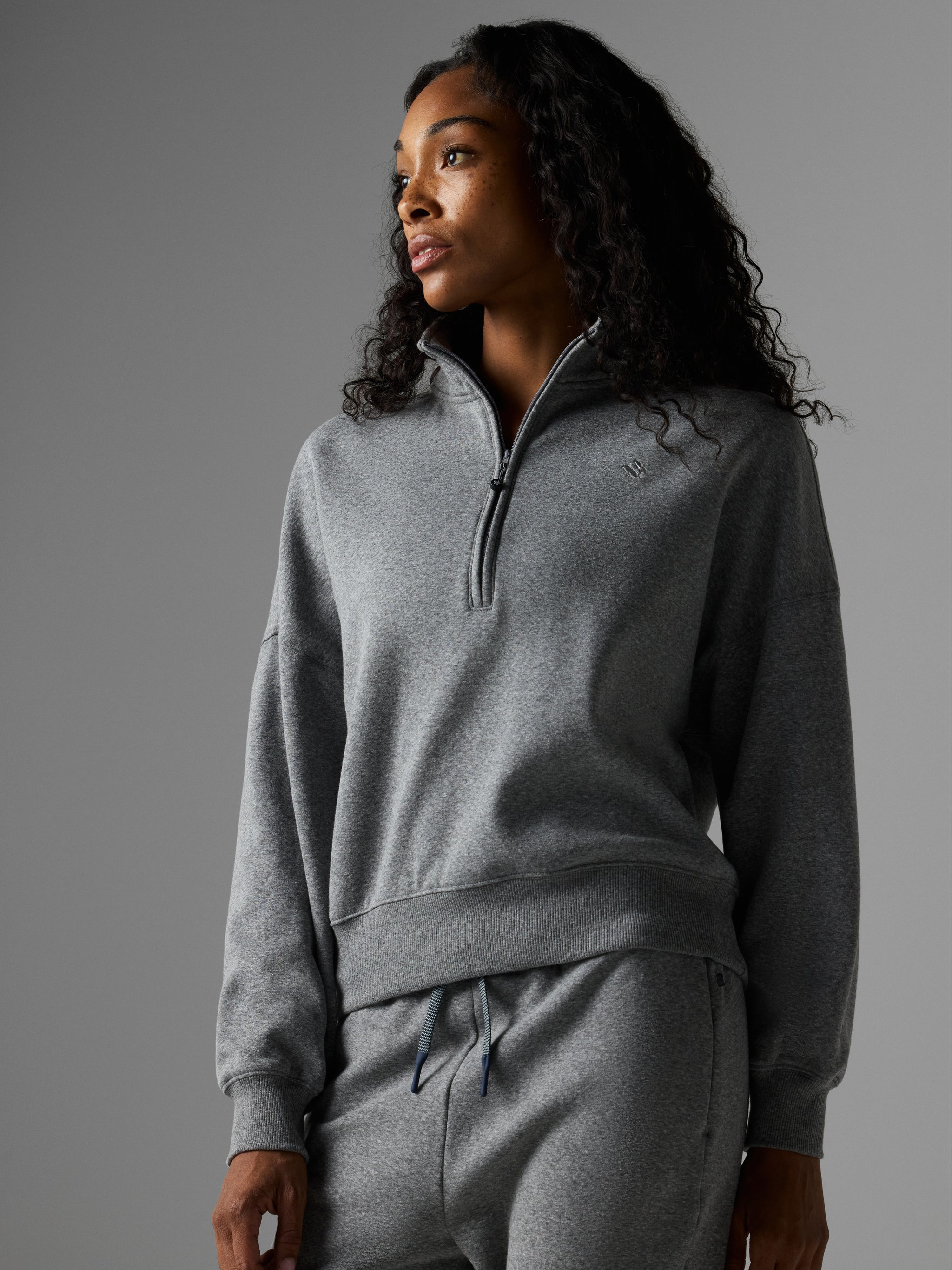 The cozy layer you’ll reach for again and again (and again). With a relaxed fit, dropped shoulder, and classic half-zip design, it’s the EZ-going pullover your winter lineup’s been missing. Soft fleece fabric and a flattering hip length makes it ideal for layering over tanks or tees as the temps dip.