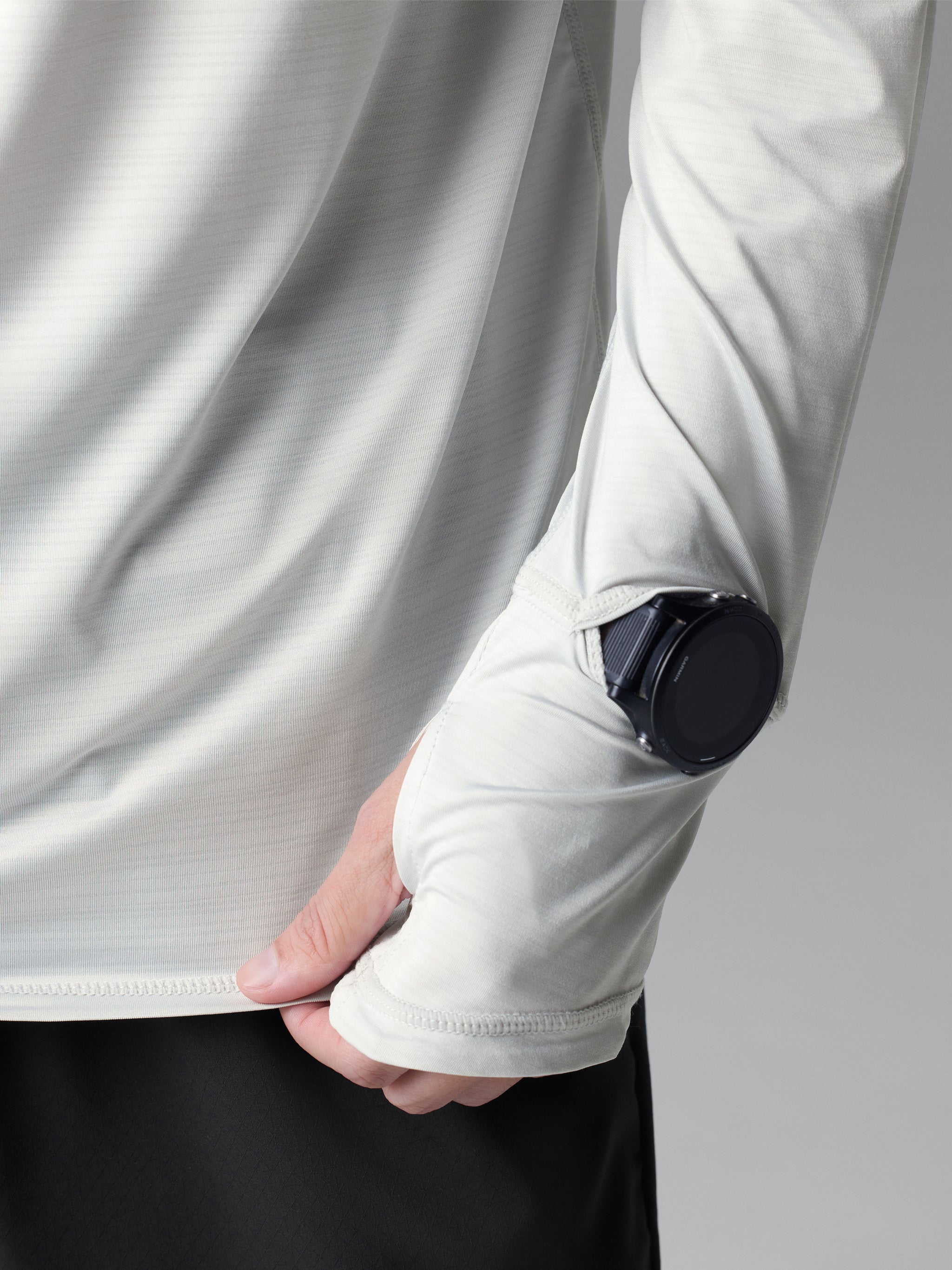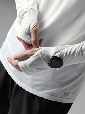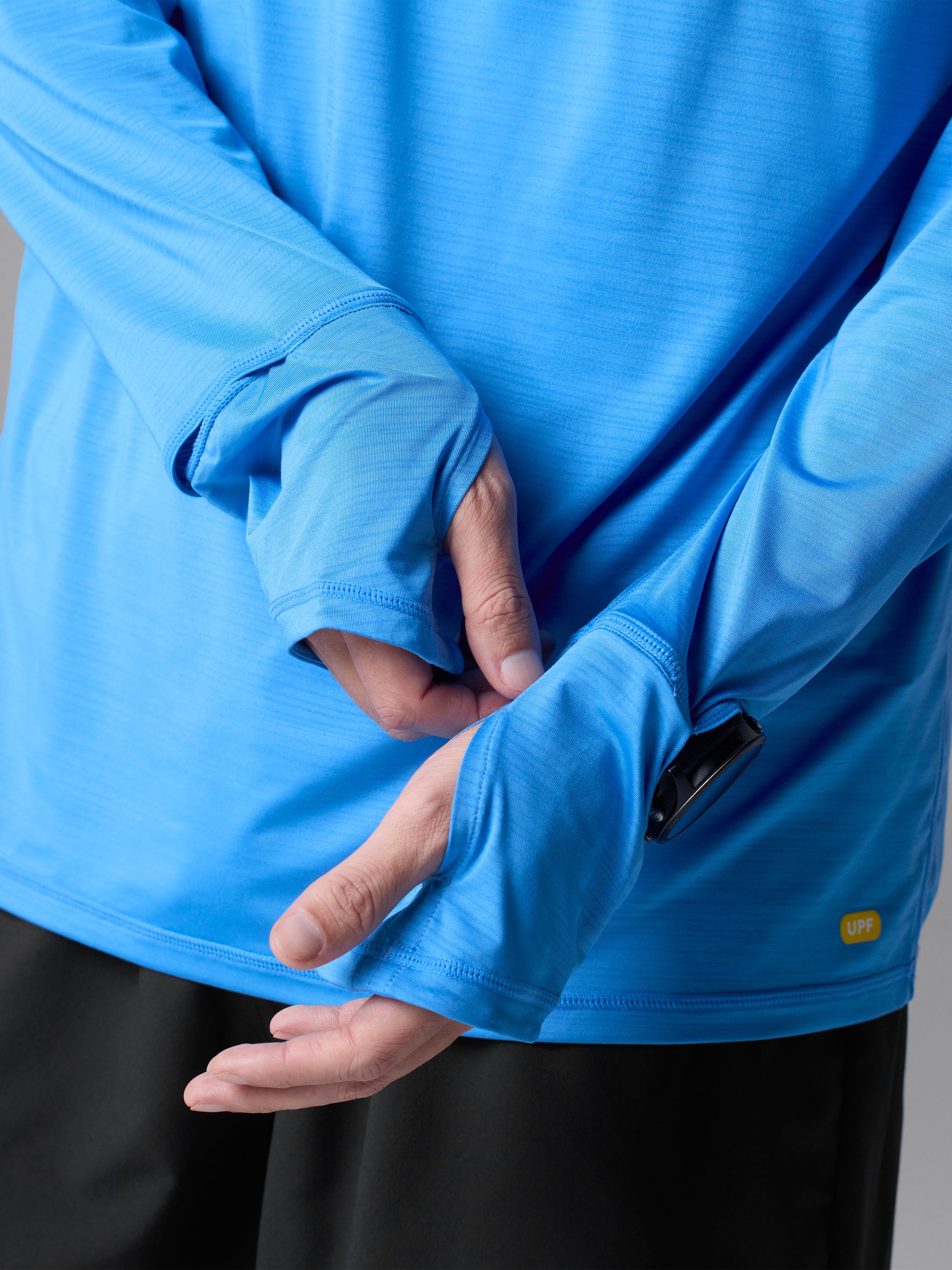 - Extended cuffs with thumbholes
