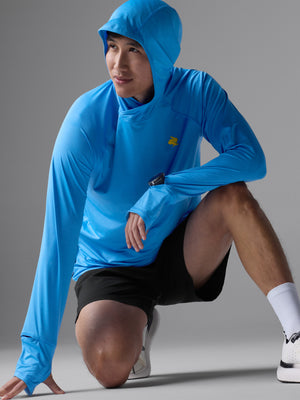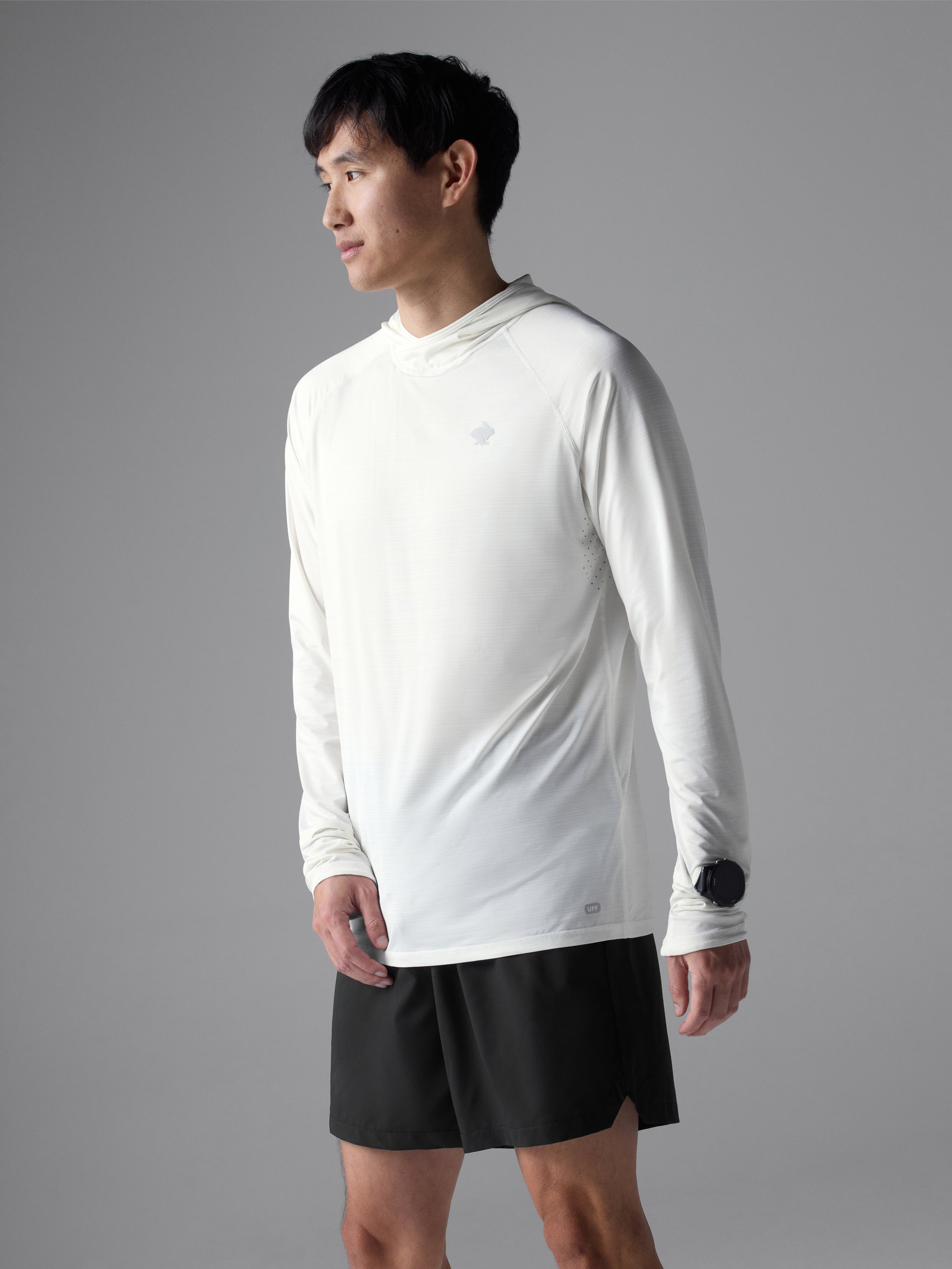 Sun safety feels better than ever. Now with a UPF 50 rating, the 2.0 updates to lightweight jersey with laser-cut perfs under the arms for impressive ventilation. While the scuba-style hood hides the neck and ears from rays, a new built-in brim shades the face and slanted cuffs cover the hands for greater protection. One last surprise: a small zippered pocket in back.