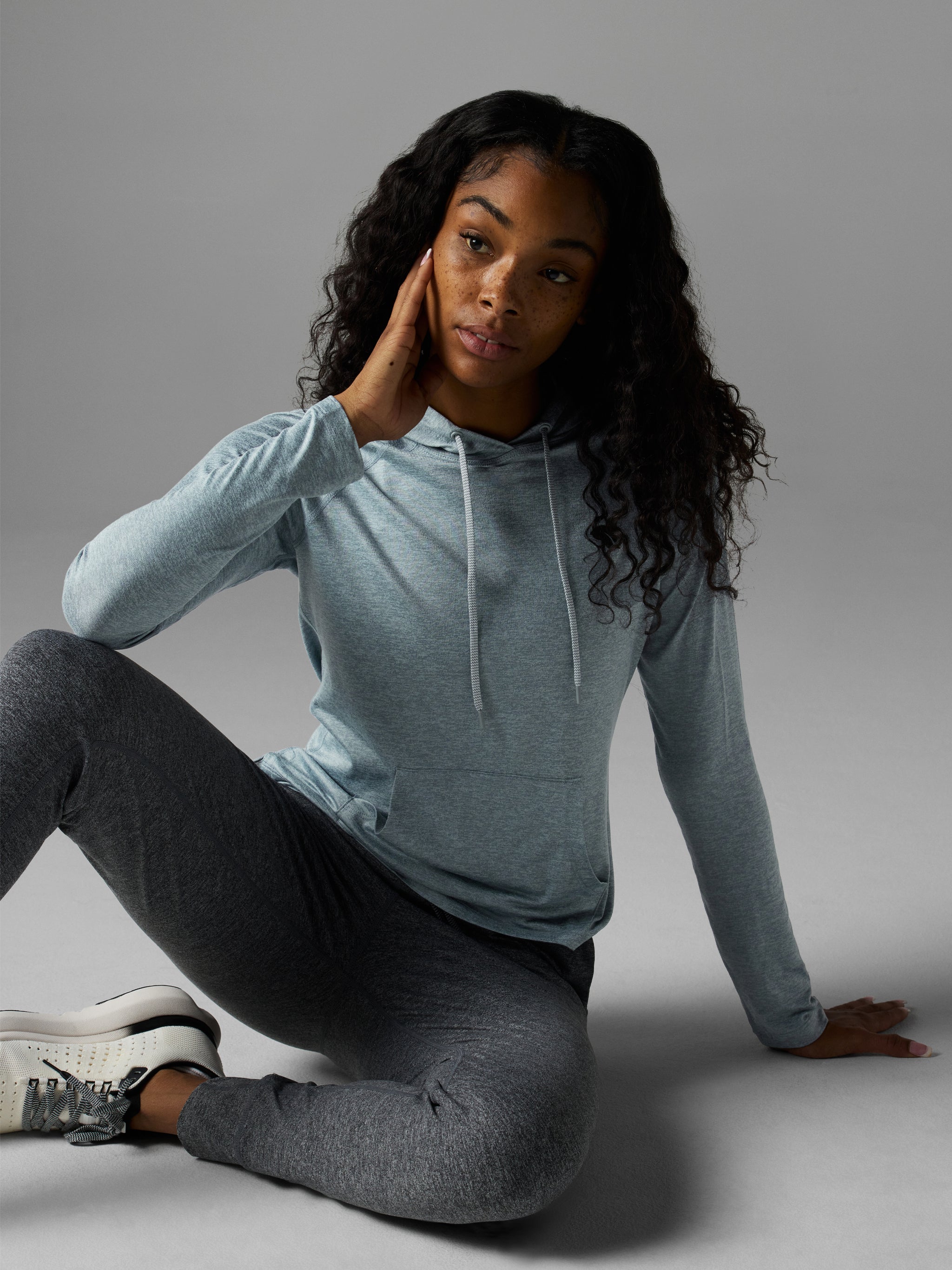 Run in, lounge in, and layer this hoodie made from our softest threads ever. The semi-relaxed fit and new elevated details make it all so EZ. Plus, lightweight Quick n’ Fit fabric is now made with recycled poly.