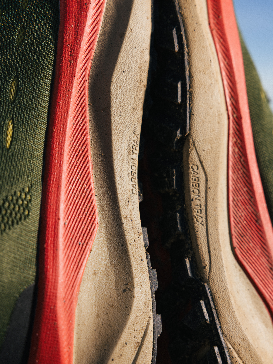 Gentle on your body. Tough on the terrain. Our patented Carbon Trax™ plate is housed in a protective EVA midsole cavity for adaptive support, energy return, and a smooth, propulsive ride. Paired with Flowstate Foam, it’s plush yet responsive—made to go all day (and then some).