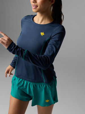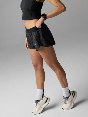 Go the distance with innovative design starting from the inside out. These versatile short shorts pack a peppermint kick and all long run necessities. Five next-level pockets, including a back zip that fits most phones, are built into the liner to reduce bounce. The half-split style, smooth hems, and laser-cut perfs mean every race feels free and cool.
