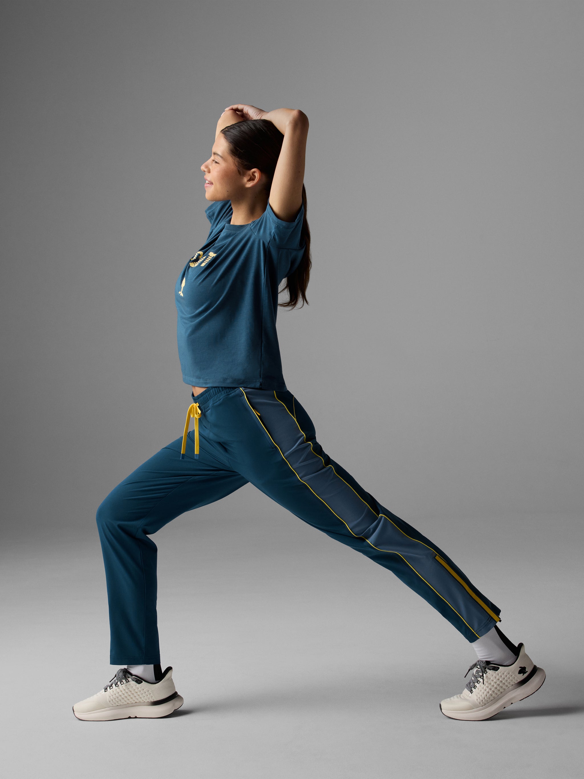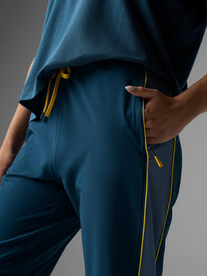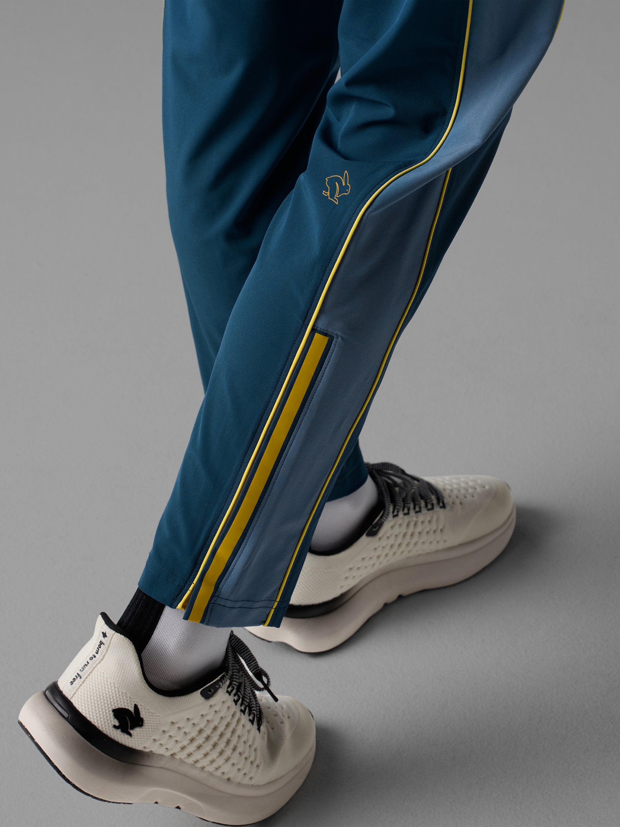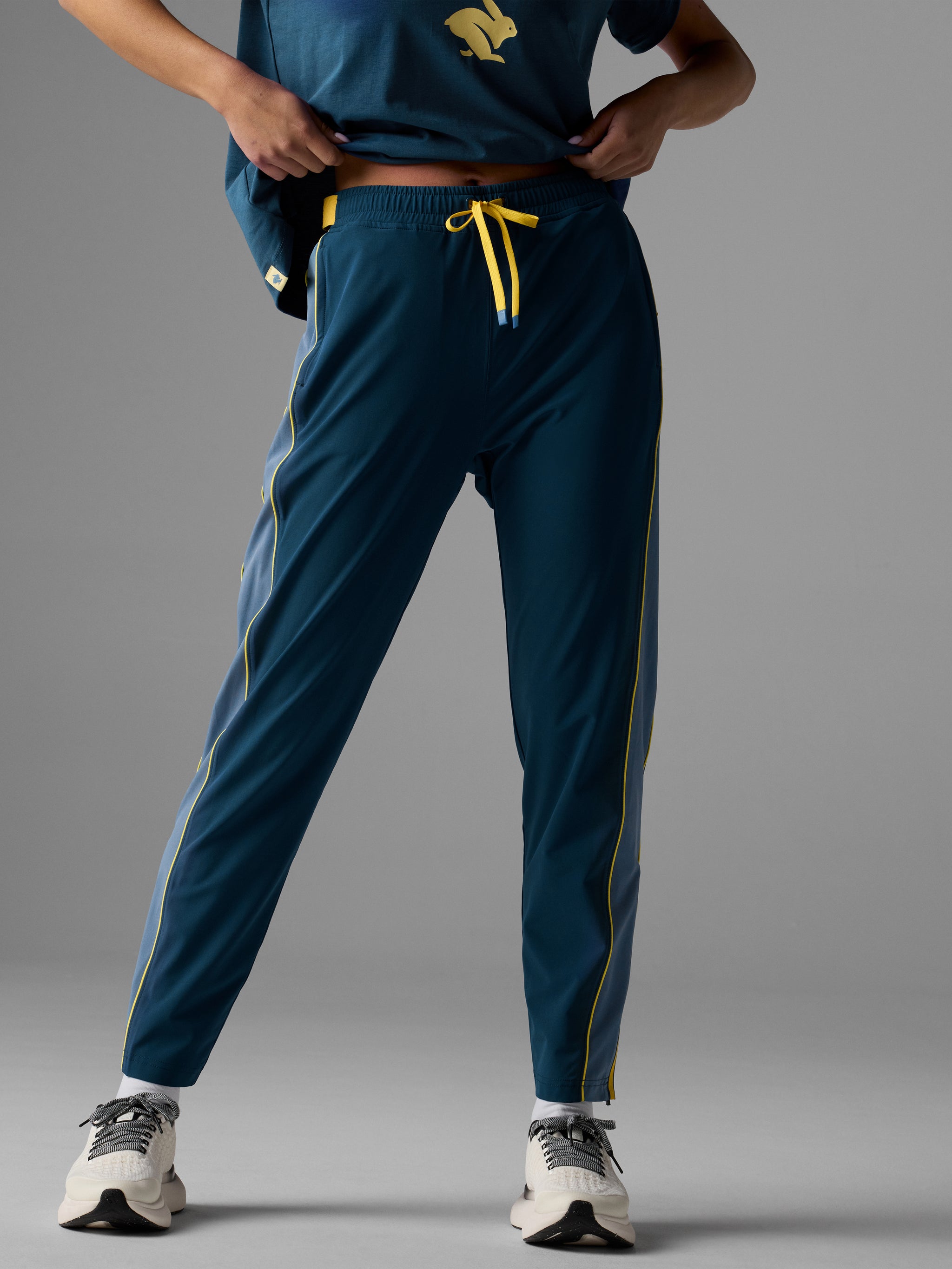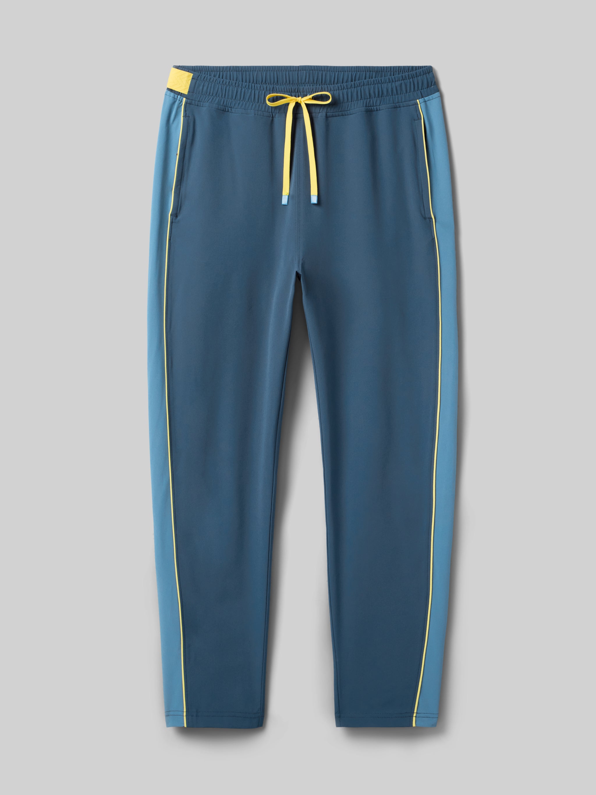 The track pants of your dreams. Designed to easily layer and breathe over running gear, these technical pants are made to move with you—before, after, and all race weekend long. Stash unneeded clothing through the exposed section of waistband elastic for on-the-fly storage. Sleek and functional.
