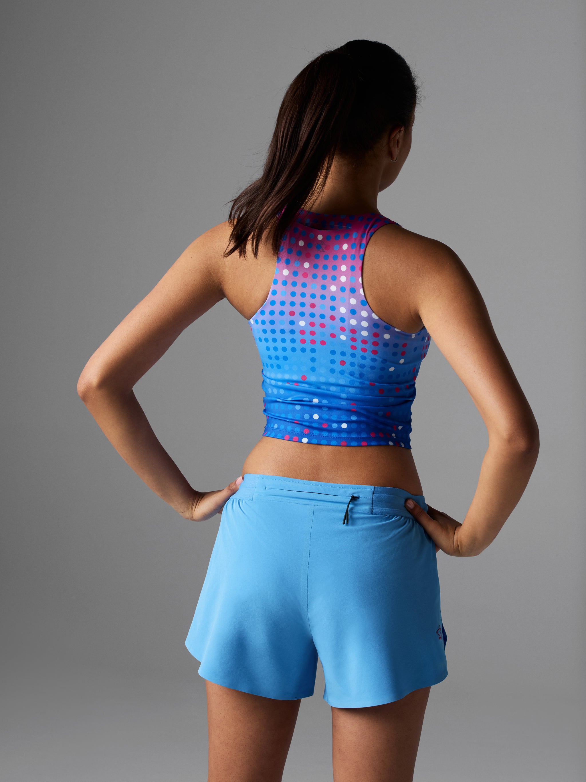 Give it your all in a crop that has it all, including a laser-cut back pocket to quickly stash and grab your phone. Built for speed and endurance, this top minimizes interruptions so you can focus on the path ahead.
